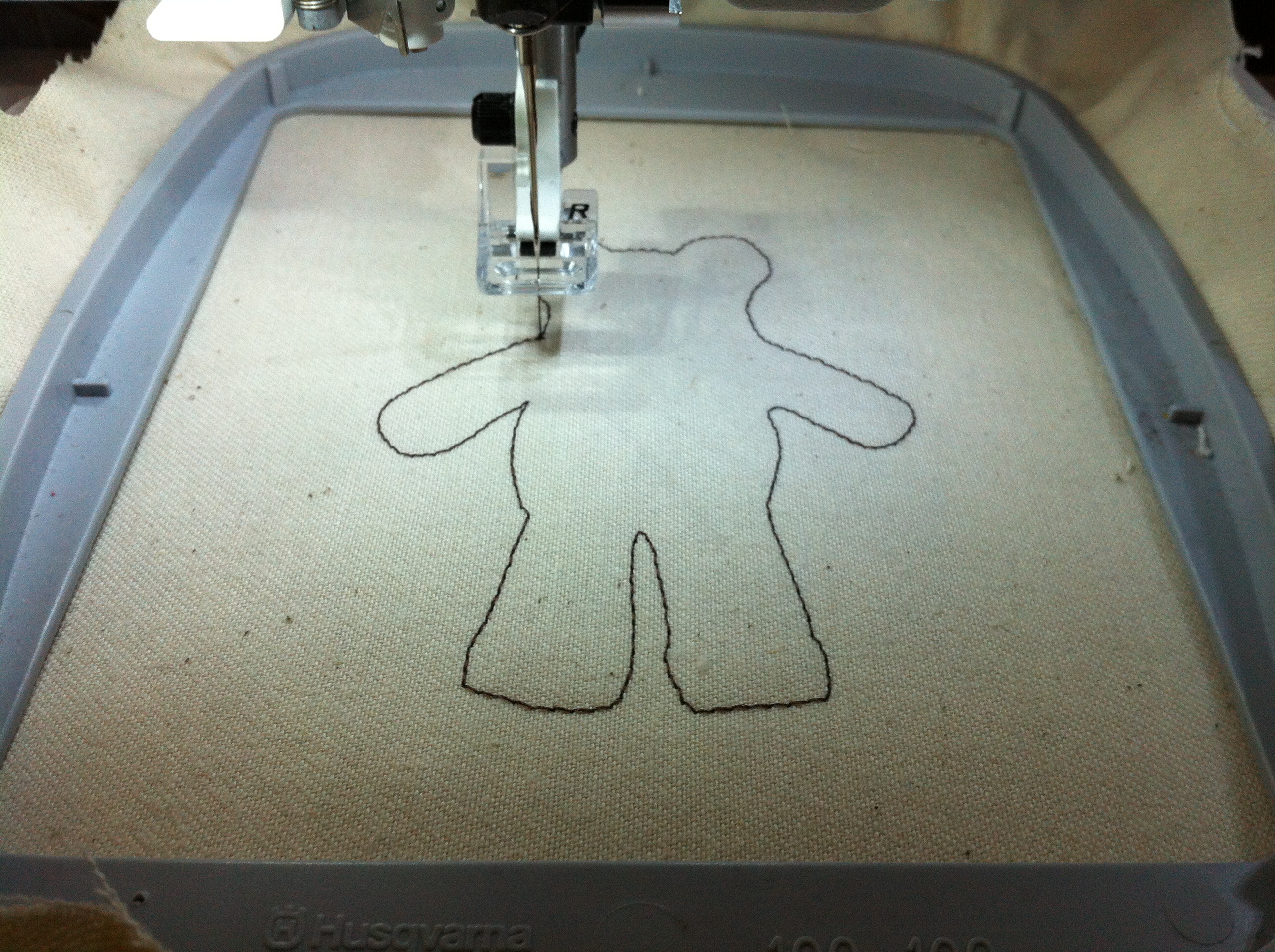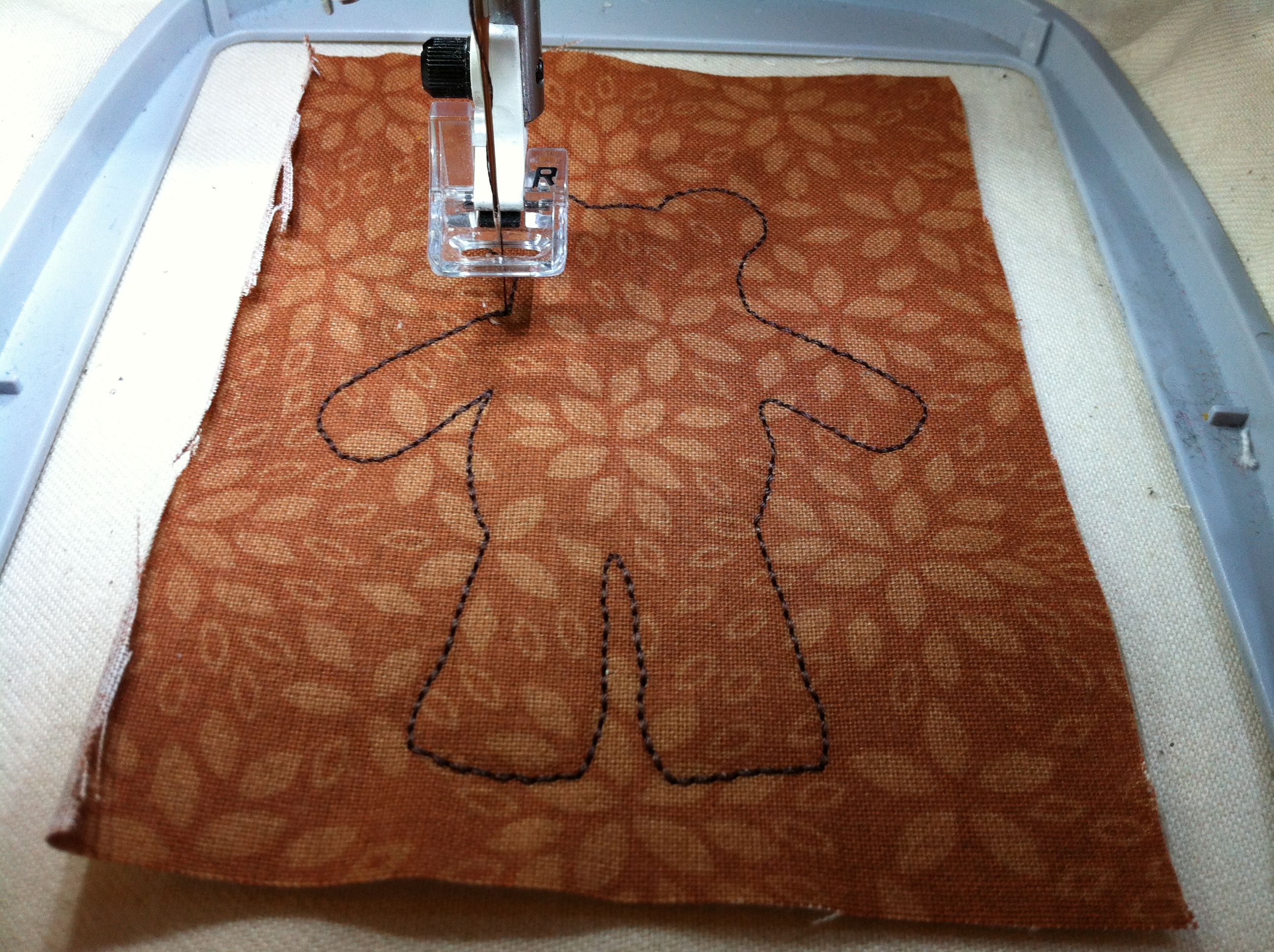 When you start the design it will begin with a dieline. A dieline is a simple stitch on your fabric that indicates where you place the appliquéd fabric.