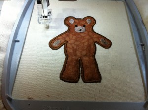 Next follow the thread changes and it's all done! When it's completed it helps to rub a lint roller over it to pick up the frayed fabric bits.