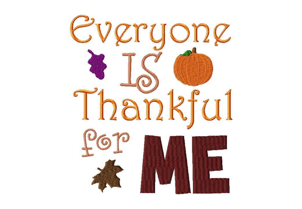 The Everyone is Thankful for me Design includes PDF color sheet and three sizes to fit 4X4 5X7 and 6X10 Hoop Sizes