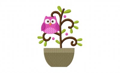 Pink Owl in Tiny Tree Stitched Embroidery Design