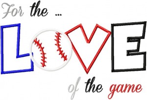 For The Love of the Game includes PDF Color Sheet and comes with three sizes to fit a 4 X4, 5 X 7, 6 X 10 hoops.