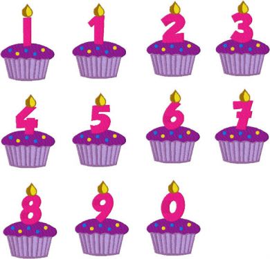 Todays free embroidery pattern is something to celebrate. We have birthday cupcakes with numbers zero through nine designed as birthday candles. Included as well is a single candle version. You can do anything with this design for everyone's birthday. From t-shrts to bibs to decorative place mats and even birthday banners this design will keep you busy for years.