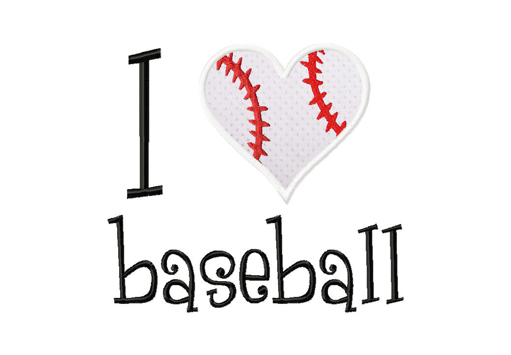 The I Heart Baseball Machine Embroidery Design includes PDF color sheet and three sizes to fit 4X4 5X7 and 6x10 Hoops