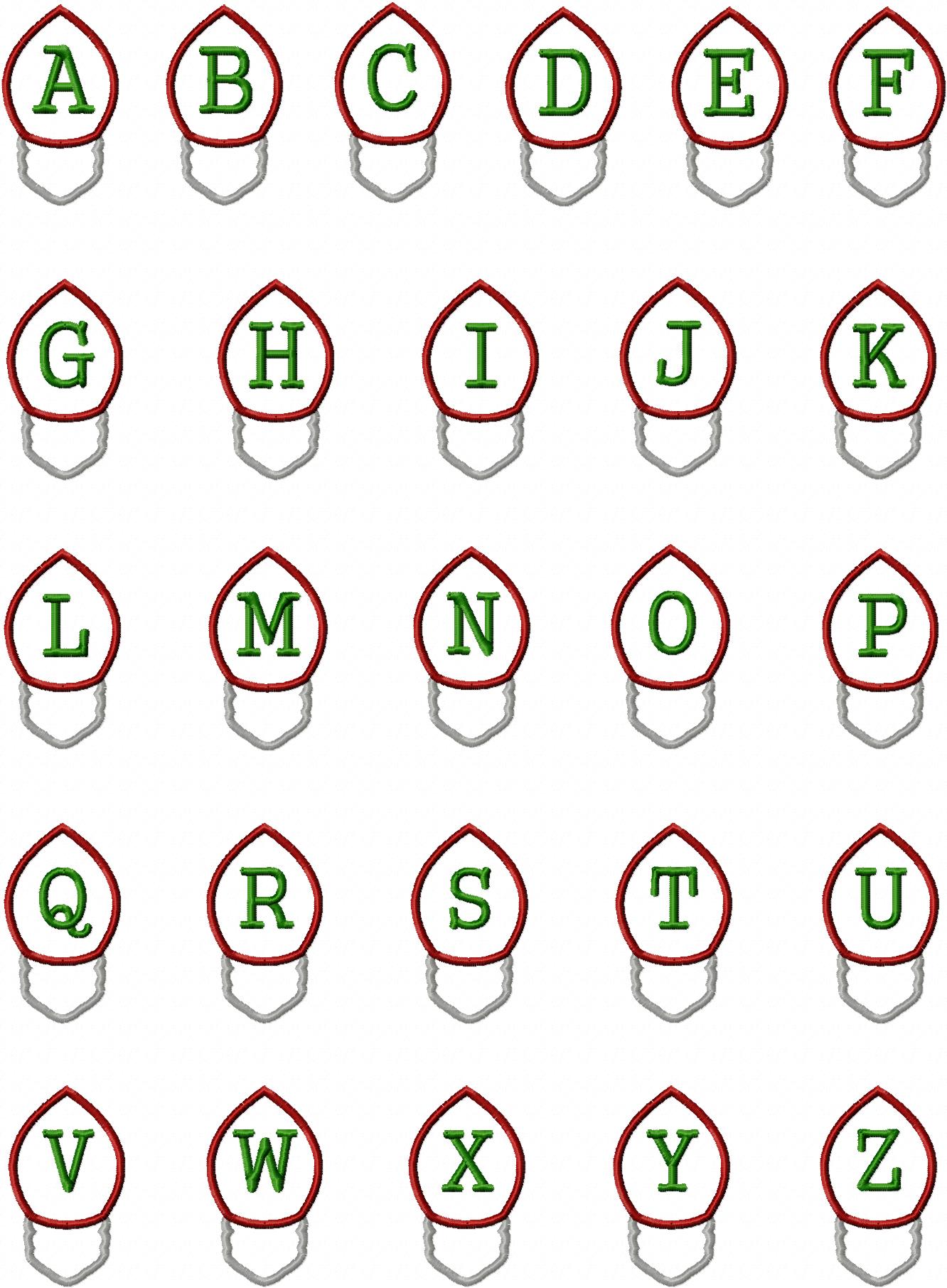 The Lights Font includes all 26 Letter Applique Lights and includes all of the following sizes: 2" 3" & 4"