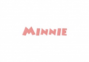 The Minnie Font includes Uppercase Letters, Numbers and Punctuation in 1" 1.5" & 2" sizes. Made with Fill Stitch.