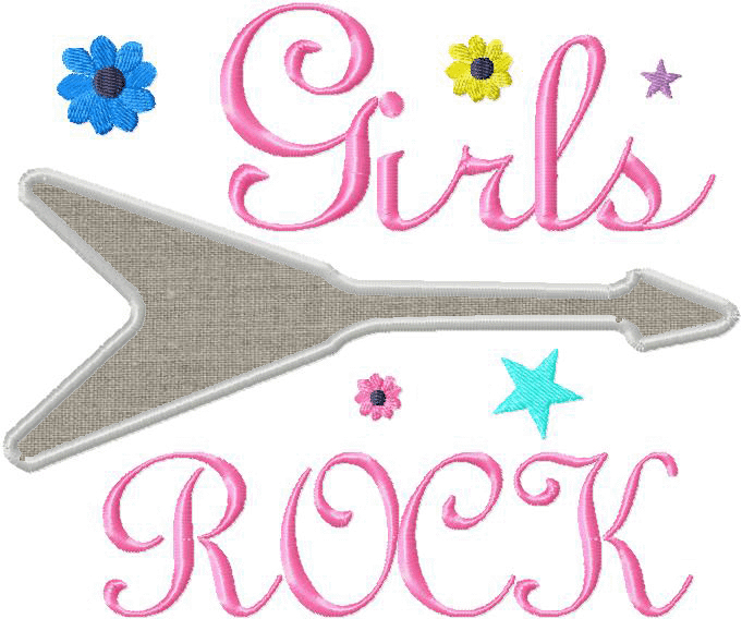 The Kids Rock Designs includes both Girls Rock and Both Rock, PDF color sheets, and sizes to fit 4X4 5X7 and 6X10 Hoops