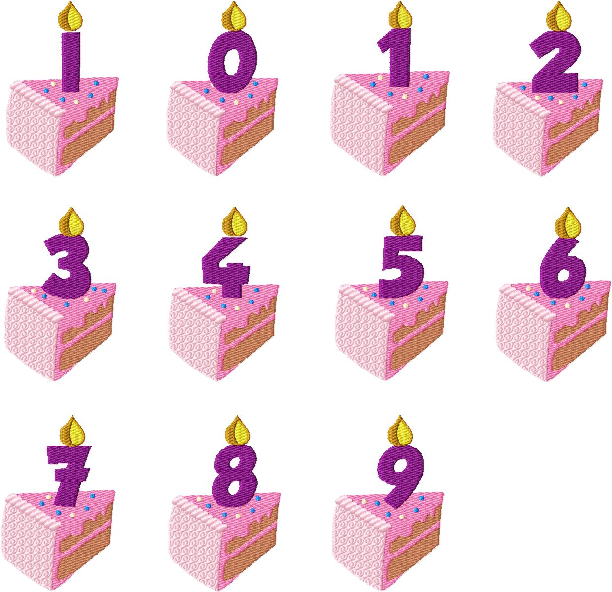 The Birthday Cake Candles Number Set Includes a PDF Color Sheet and Numbers 0 - 9 Plus a Bonus Normal Candle each Design to fit a 4X4 Hoop. Choose your format below.
