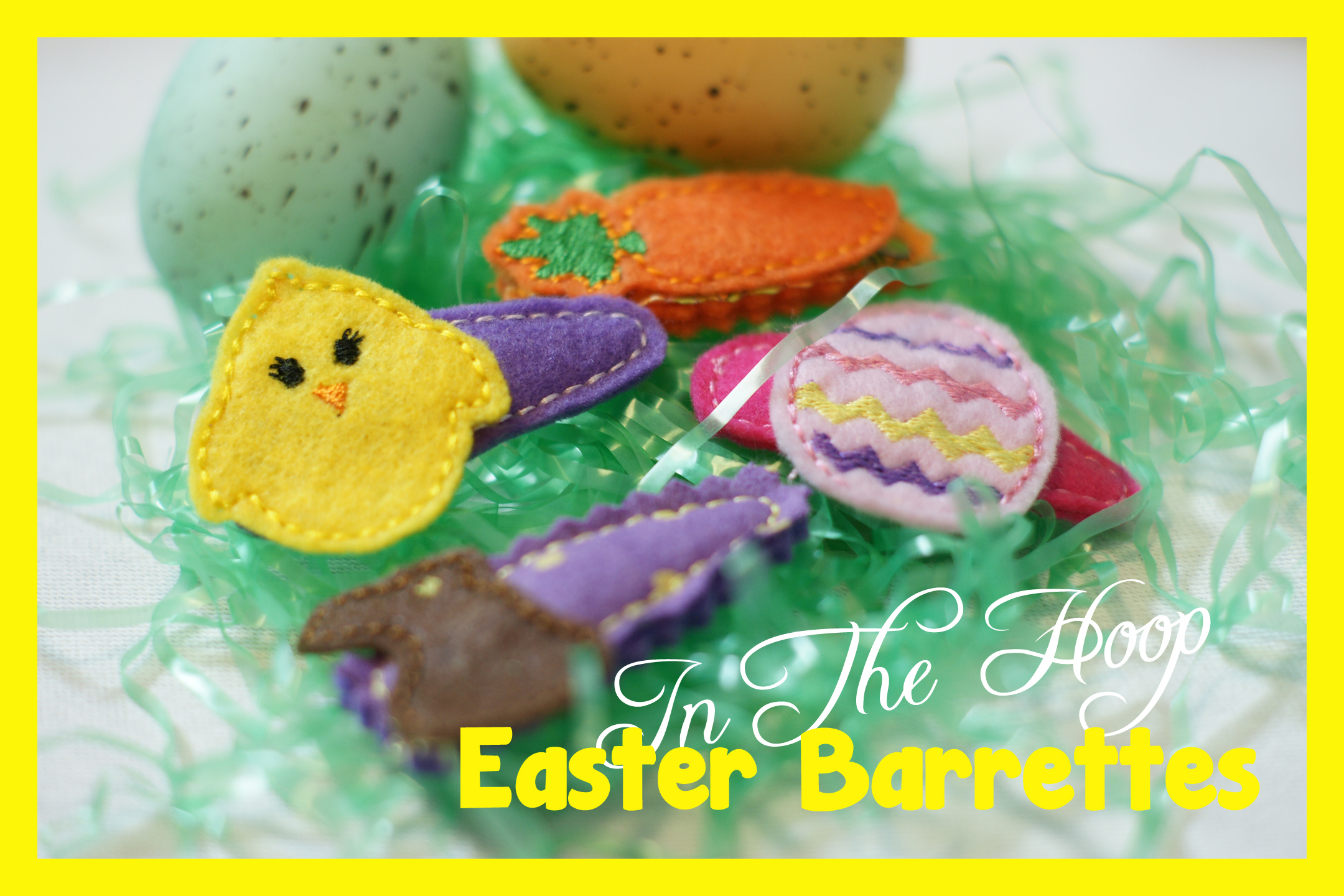 Make someones Easter special when your stitch out these awesome and easy in the hoop barrette covers! Package includes a chick, a Chevron egg, a carrot and a chocolate bunny! Download the In The Hoop Easter Barrette Covers Four Pack Machine Embroidery Design for Gold Members only.