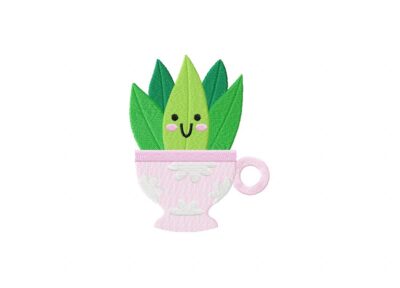 Aloe Plant in Teacup Embroidery Design