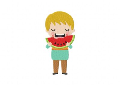 Boy Eating Watermelon Machine Embroidery Design