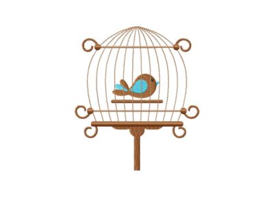 Brown Bird in Brown Classy Cage Stitched Embroidery Design