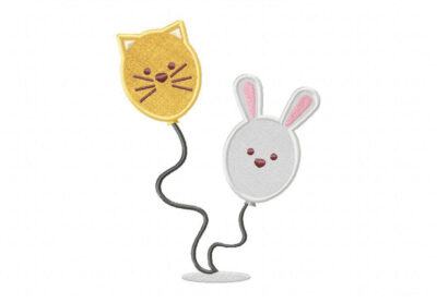 Cat and Bunny Balloon Stitched and Appliqué Embroidery Design