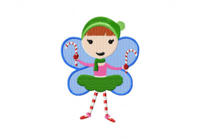 Blue Wings Candy Cane Fairy Machine Embroidery Design