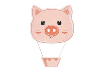 Cute Pig Hot Air Balloons Includes both Applique and Stitch Embroidery Design