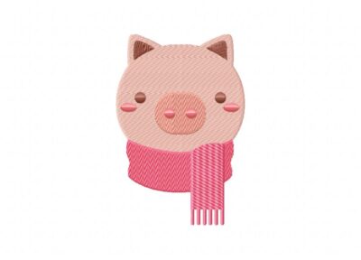 Cute Piggy with Scarf Includes both Applique and Stitch Embroidery Design