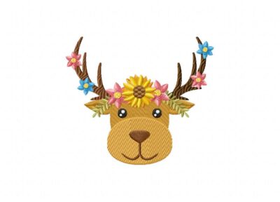 Delicate Floral in Deer Head Includes both Applique and Stitch Embroidery Design