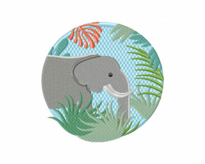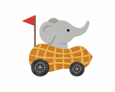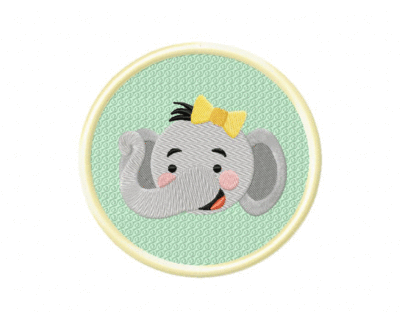 Adorable Smiling Baby Elephant with Bow Embroidery Design