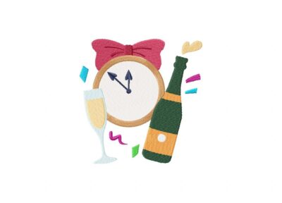 New Year Countdown with Wine Embroidery Design