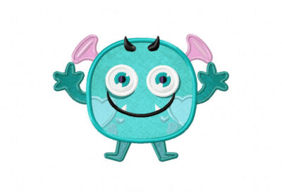 Blue Round Monster Stitched and Appliqué Embroidery Design