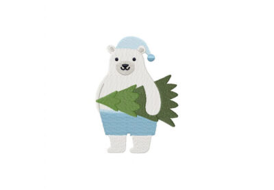 White Bear Pine Tree Embroidery Design