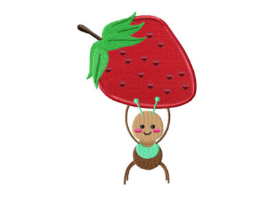 Ant Strawberry Stitched and Appliqué Embroidery Design