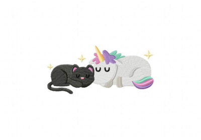 Black Kitty Sleeping With Unicorn Stitched Embroidery Design
