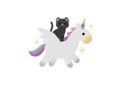 Black Kitty Riding Unicorn Stitched Embroidery Design