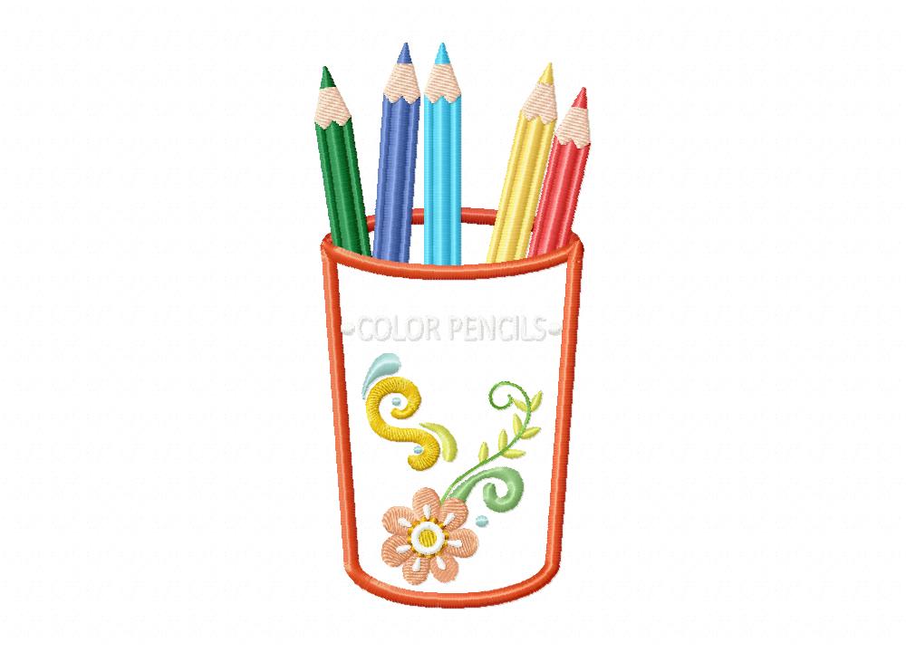 Art tool Color Pencil Includes Both Applique and Stitch Embroidery Design