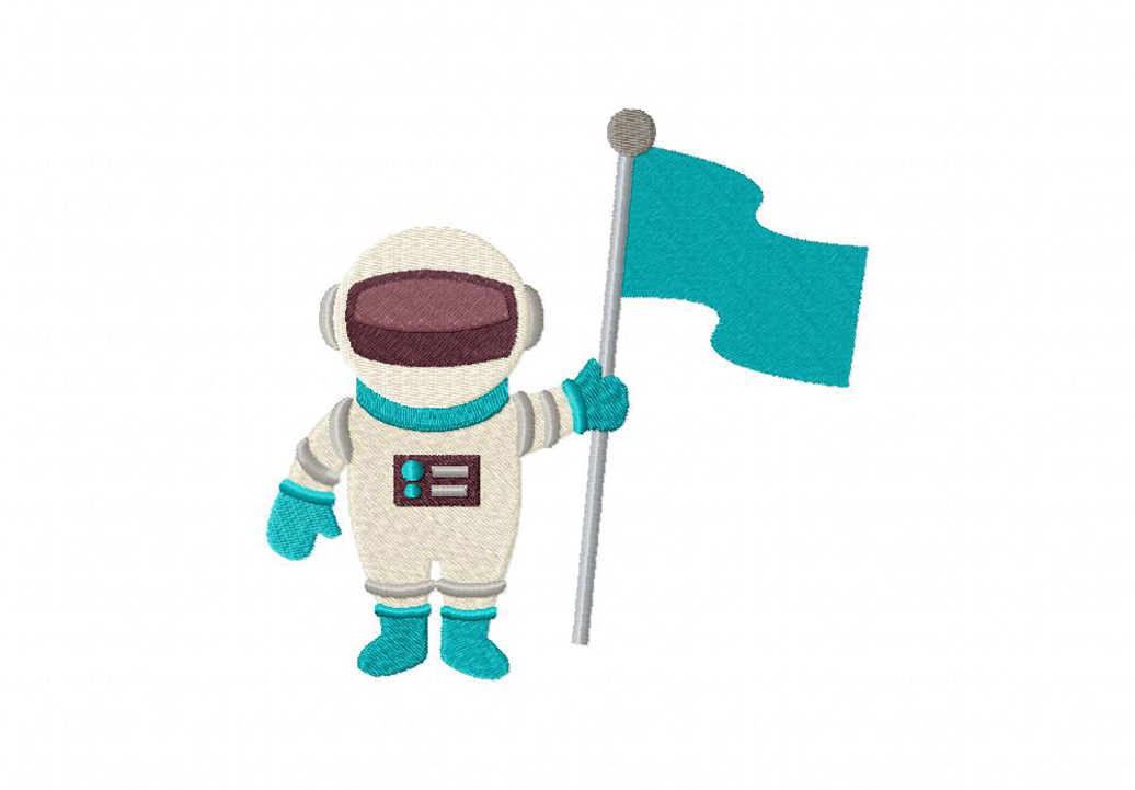 Be proud and free when you stitch out this astronaut with flag machine embroidery design!