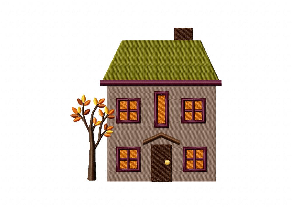 Autumn House One Tree Machine Embroidery Design