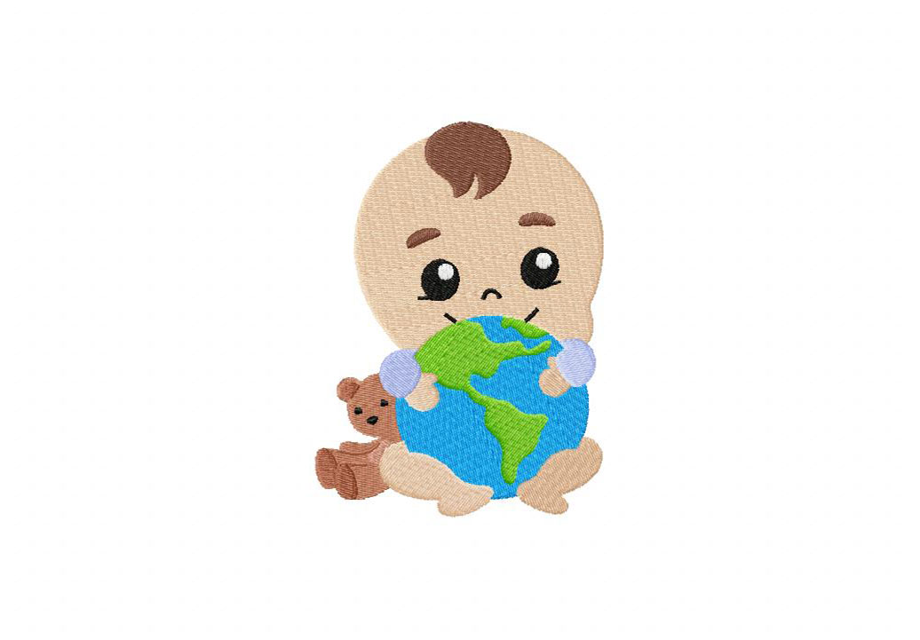 Baby Hugging Earth Embroidery Design