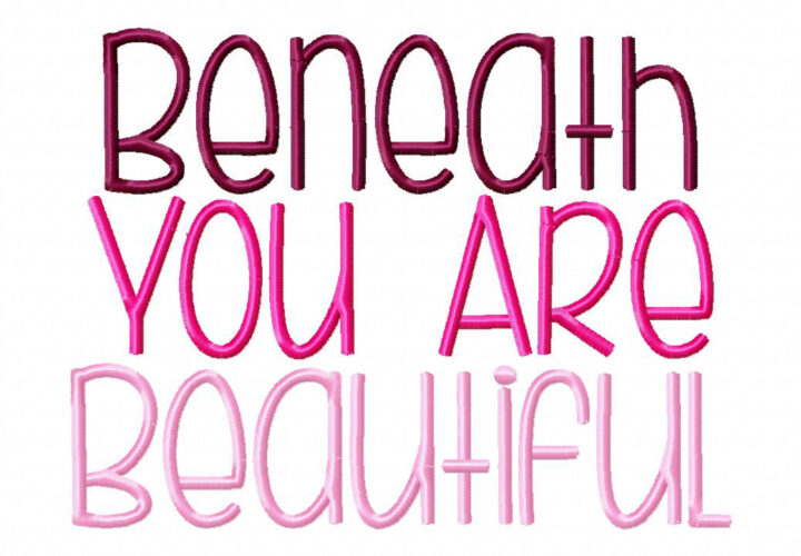 The Beneath You’re Beautiful Machine Embroidery Font Set includes all Uppercase Letters, Lowercase Letters and Numbers in all of the following sizes: 1″ 2″ & 3″