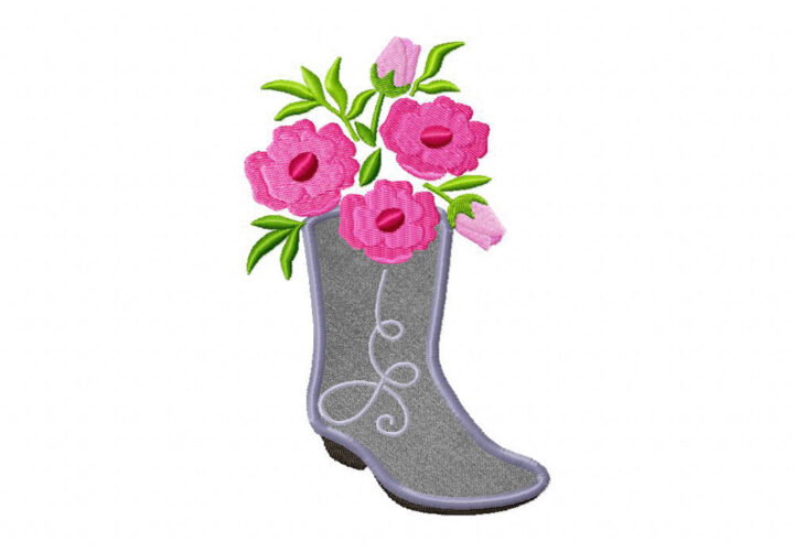 Stitch out this Boot Bouquet machine embroidery design and add a verdant floral touch to your projects!