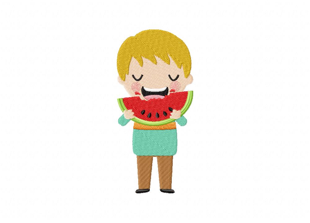 Make your projects tasty with this Boy Eating Watermelon machine embroidery design!