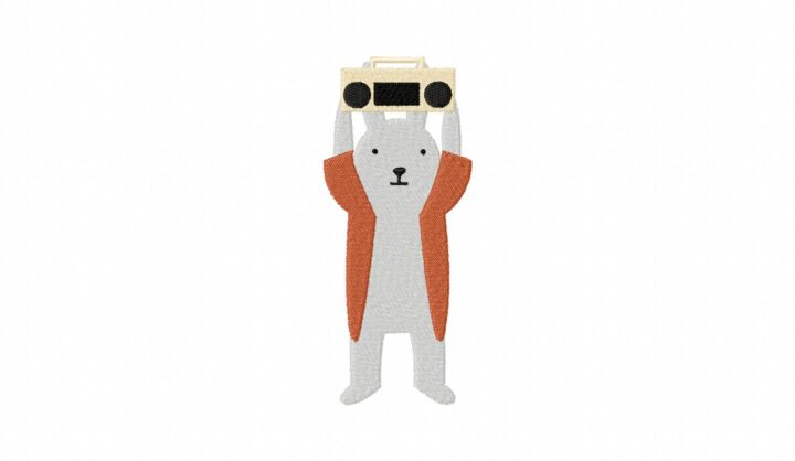 Make a statement with this cute bunny machine embroidery design in the style of 80s movie say anything!
