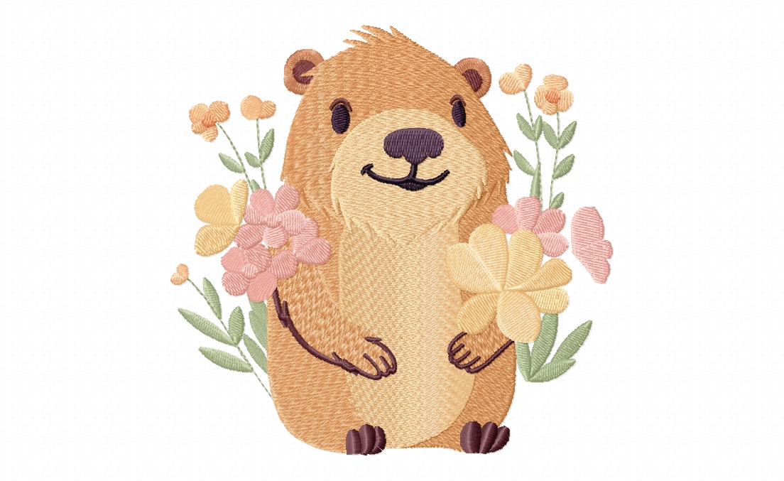 Capybara and Flowers Stitched Embroidery Design