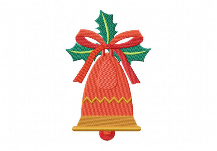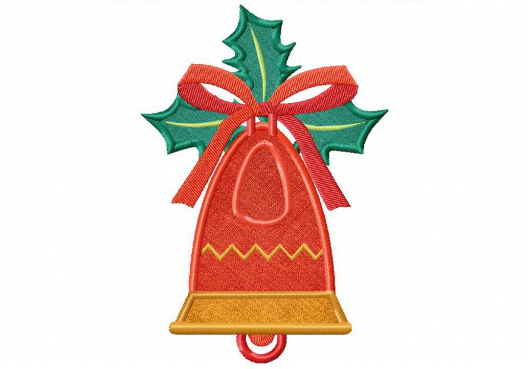 Christmas Bell with a Mistletoe Includes both Applique and Stitch Embroidery Design