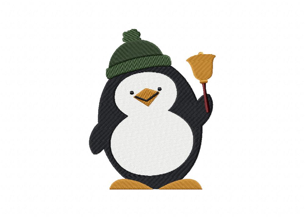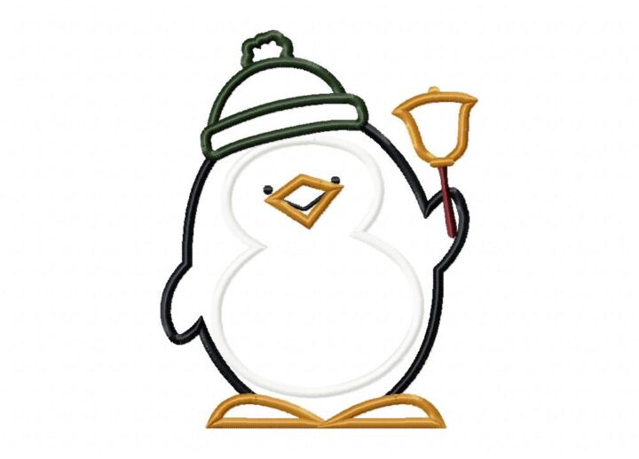 Christmas Penguin with Green Bonnet and Bell Toppings Includes both Applique and Stitch Embroidery Design