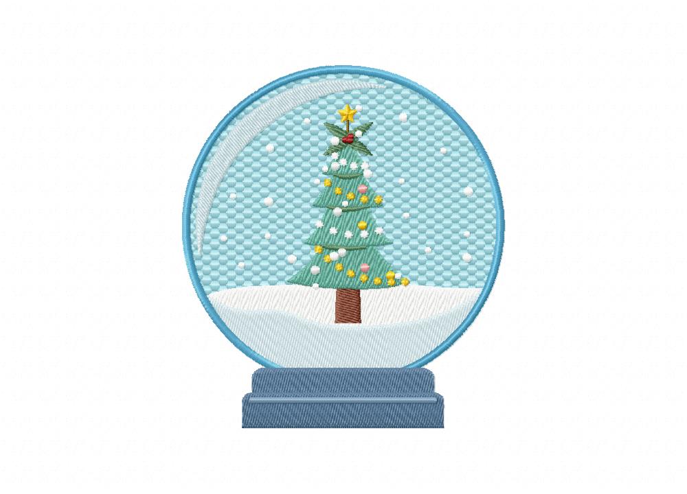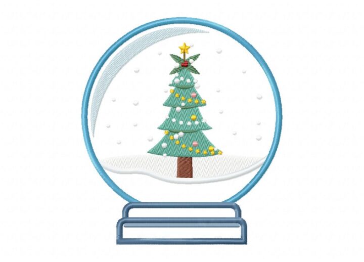 Christmas Tree in a Snow Globe Includes both Applique and Stitch Embroidery Design