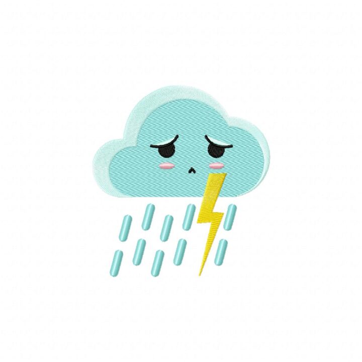 Make your projects cloudy but cute with this Cloud And Rain machine embroidery design!