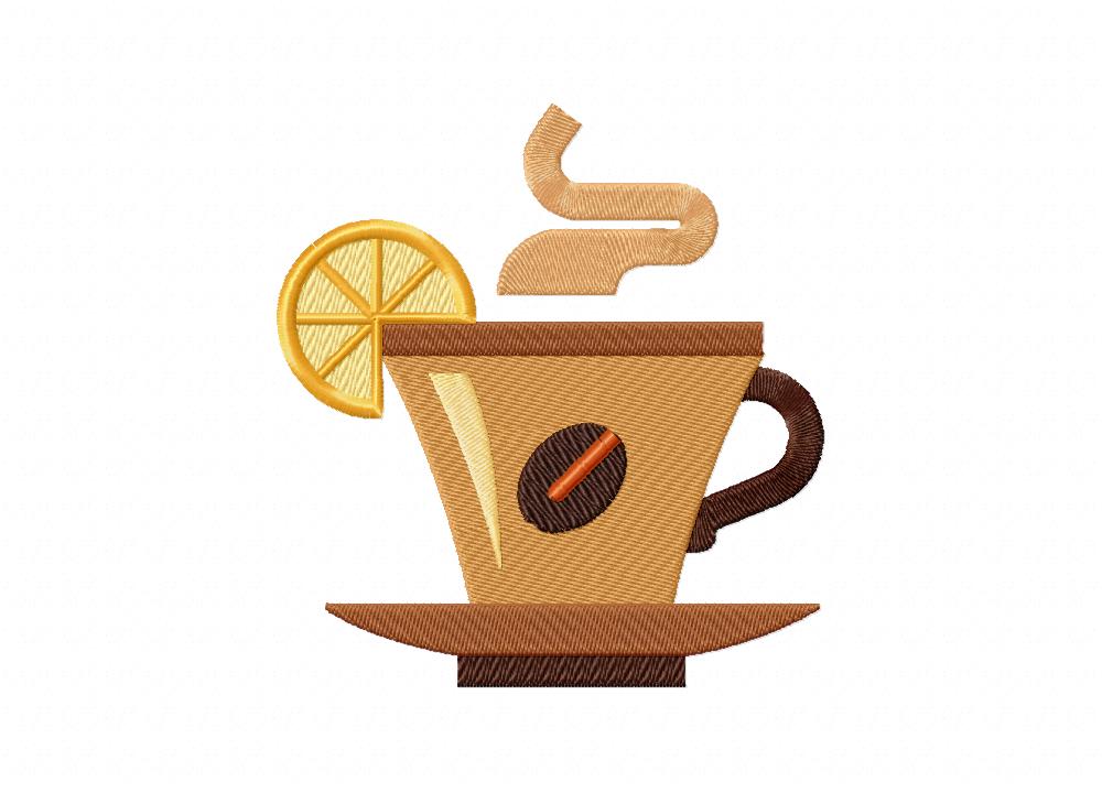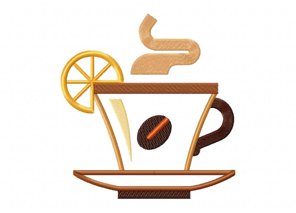 Coffee Cup with Lemon Slice Includes Both Applique and Stitch Embroidery Design