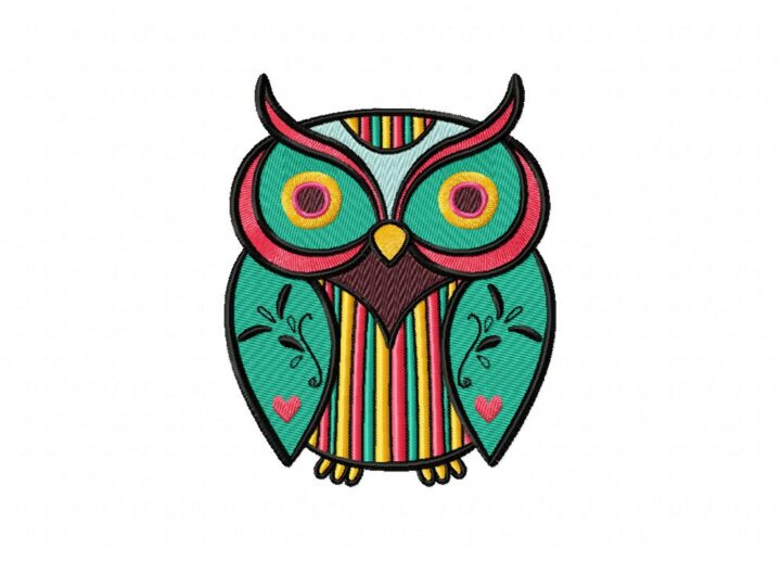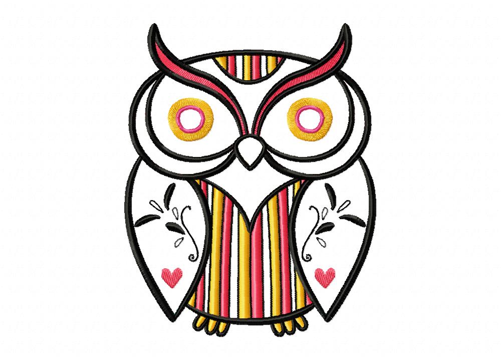 Colorful Big-Eyed Owl Includes Both Applique and Stitch Embroidery Design