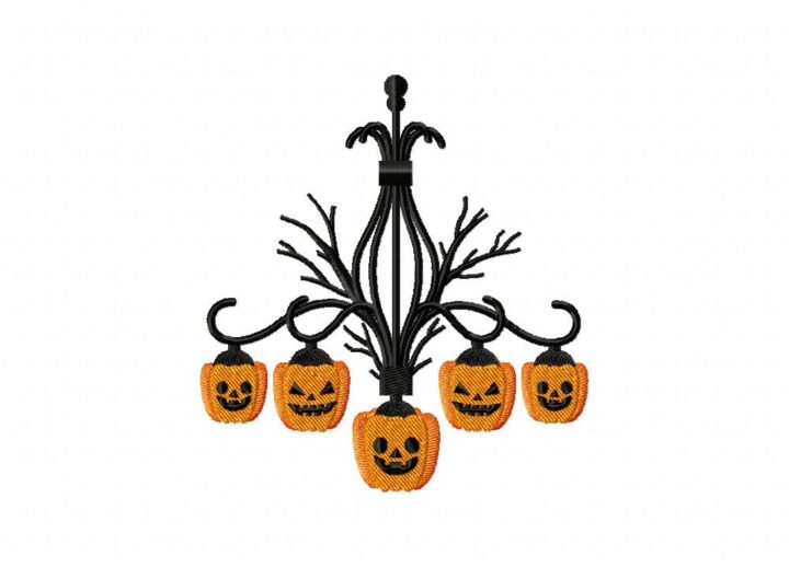 Enter the Halloween world with this Creepy Pumpkin Chandelier machine embroidery design!