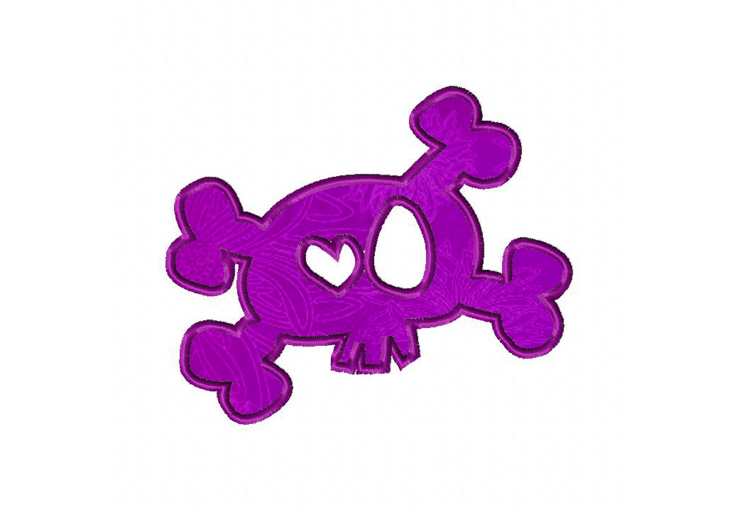 Crossbones With Heart Eye Machine Embroidery Includes Both Applique and Fill Stitch