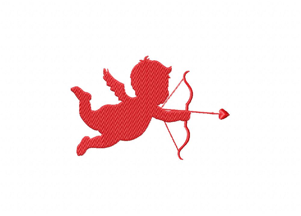 Cupid Silhouette with Heart Arrow Embroidery Design