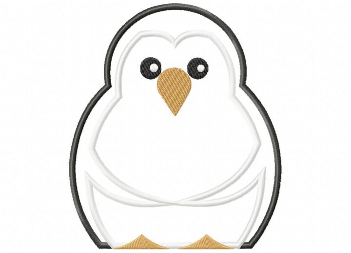 Cute Baby Penguin Includes Both Applique and Stitch Embroidery Design