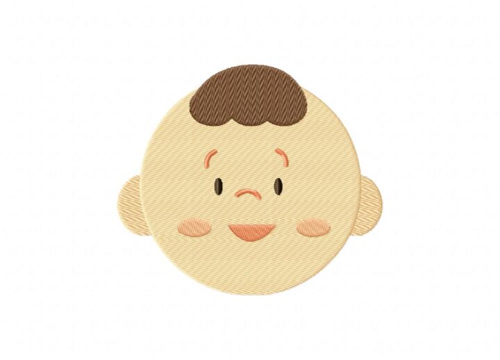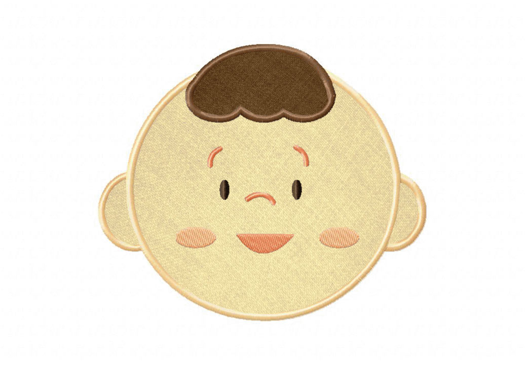 Cute Baby with Brown Hair Includes Both Applique and Stitch Embroidery Design