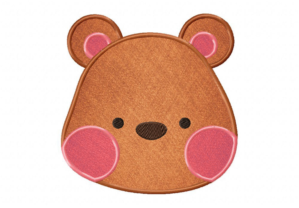 Cute Bear Head Includes Both Applique and Stitch Embroidery Design