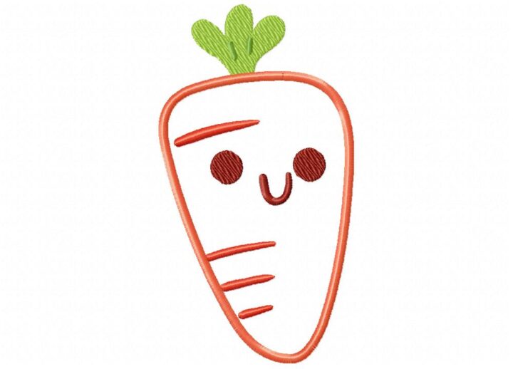 Cute Carrot Includes Both Applique and Stitch Embroidery Design