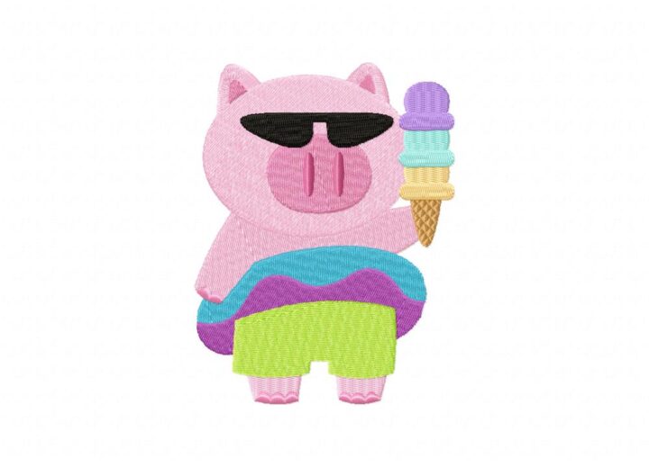 Cute Piggy With Ice Cream Embroidery Design